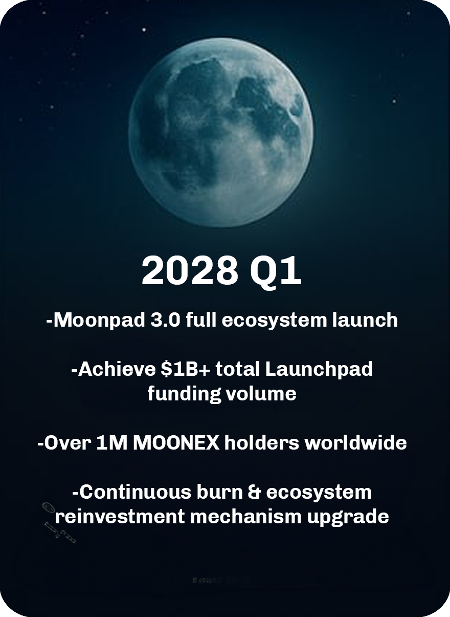 MOONEX is the Launchpad token, powering the Moonpad ecosystem.