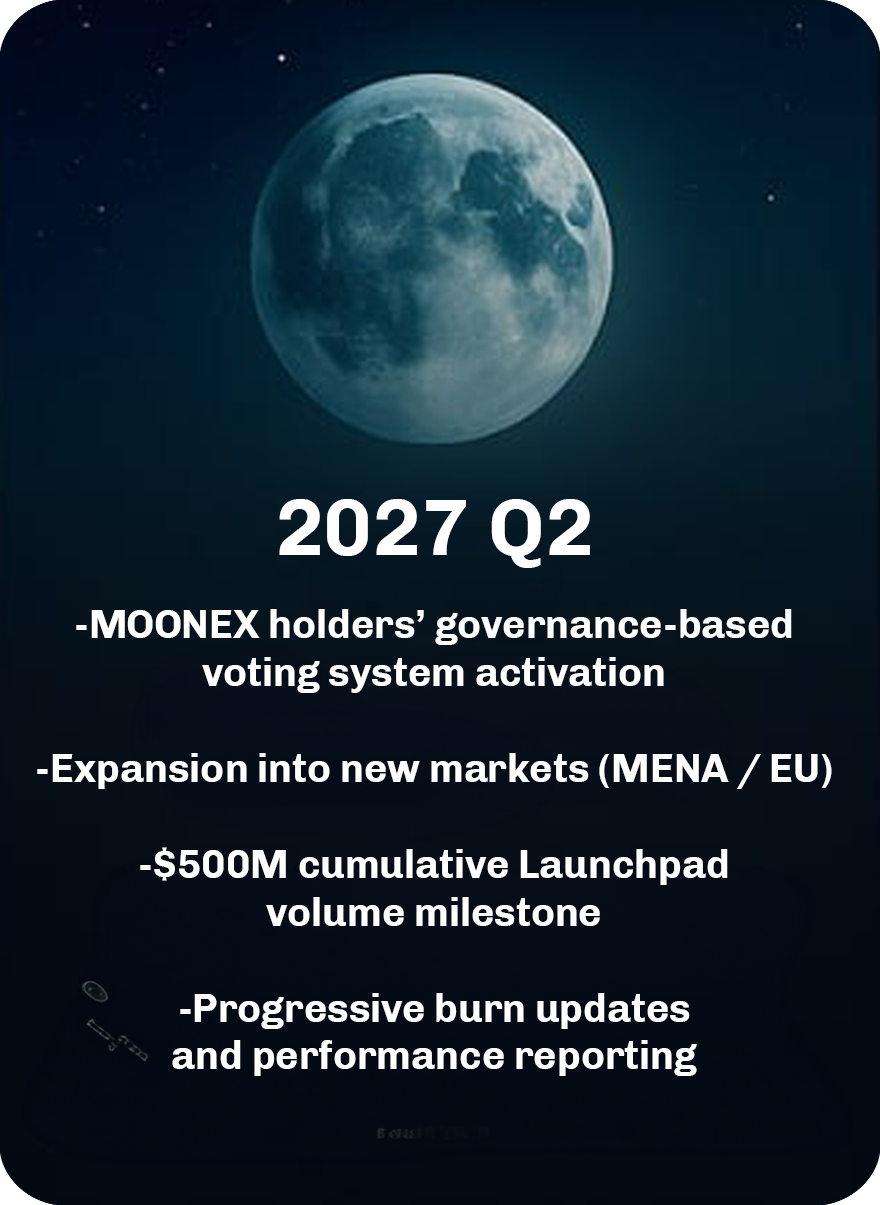 A portion of Moonpad’s revenue is used to instantly buy back and burn MOONEX creating a deflationary model that drives long-term token value growth.